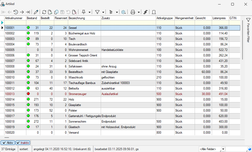 - Ausgeklügeltes Preissystem (u.a. Listenpreise, 10 Preislisten, kundenspezifische Preise, Aktionspreis, Staffelpreise)