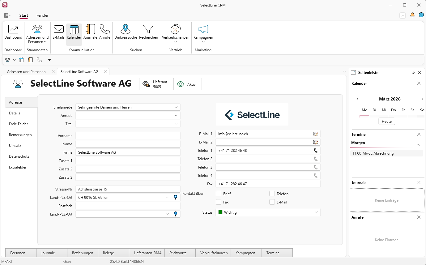 - Beliebige Anzahl Ansprechpersonen und Lieferadressen pro Adresse