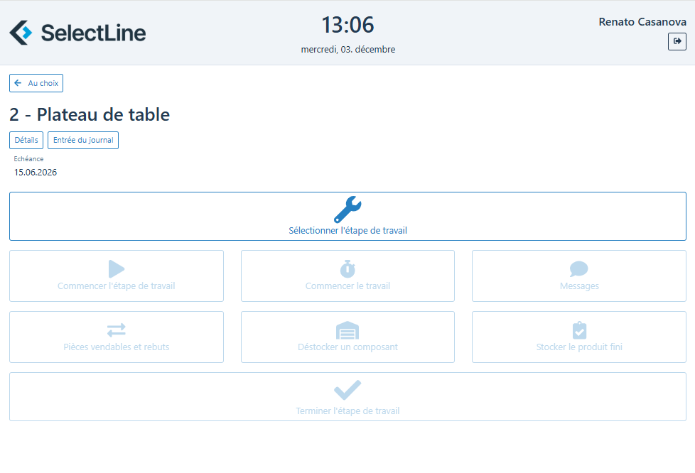 SelectLine BDE (BetriebsDatenErfassung – Saisie des données de production) vous assiste dans la documentation des temps de production réels, vous donne un accès mobile à tous les ordres de fabrication et à toutes les étapes de travail individuelles et enregistre le détail du temps passé.