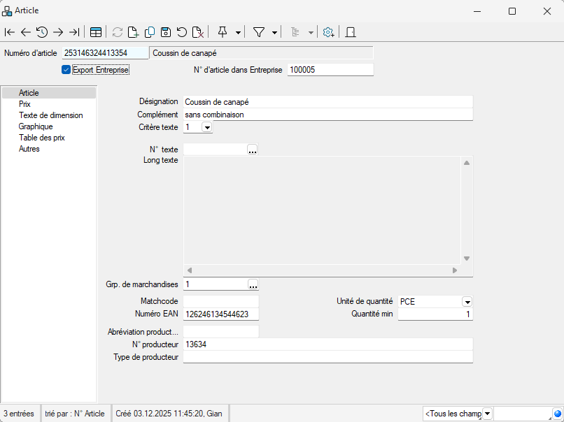 Comme alternative à la fonction d’export intégral, un assistant d’import-export à toutes épreuves est également à disposition. Il permet d’importer et d’exporter les données d’articles dans différents formates tels que ASCII XML.