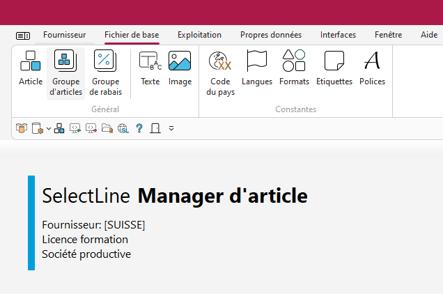 La base de données article sera reprise directement dans SelectLine Entreprise. Suivant l’utilisation, les longs textes ou les textes d’articles spécifiques pour les fournisseurs peuvent être utilisés. En supplément aux fichiers de bases d’articles, des nombreuses options telles les groupes d’articles, groupes de rabais, graphiques et textes sont disponibles.