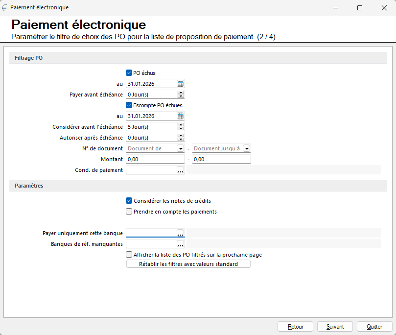 Propositions de paiement et liste des postes ouverts en un simple clic
