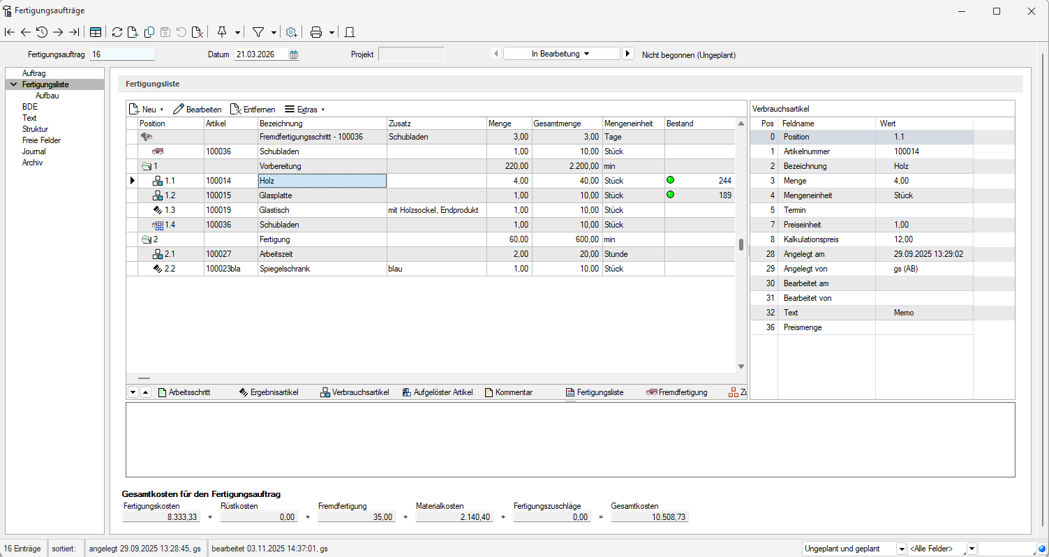 - Analyse der Abweichungen bei Arbeitsaufwand, Ressourcen oder Artikeln