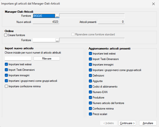 - Importazione listini dei fornitori