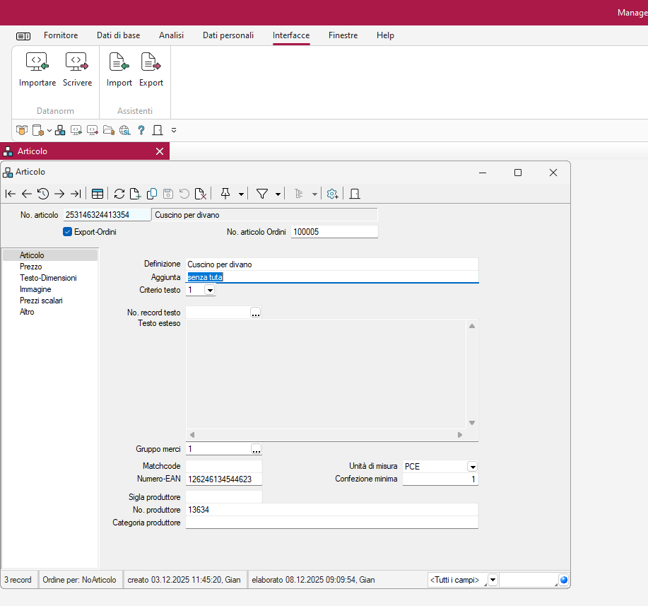 SelectLine Manager Dati Articoli