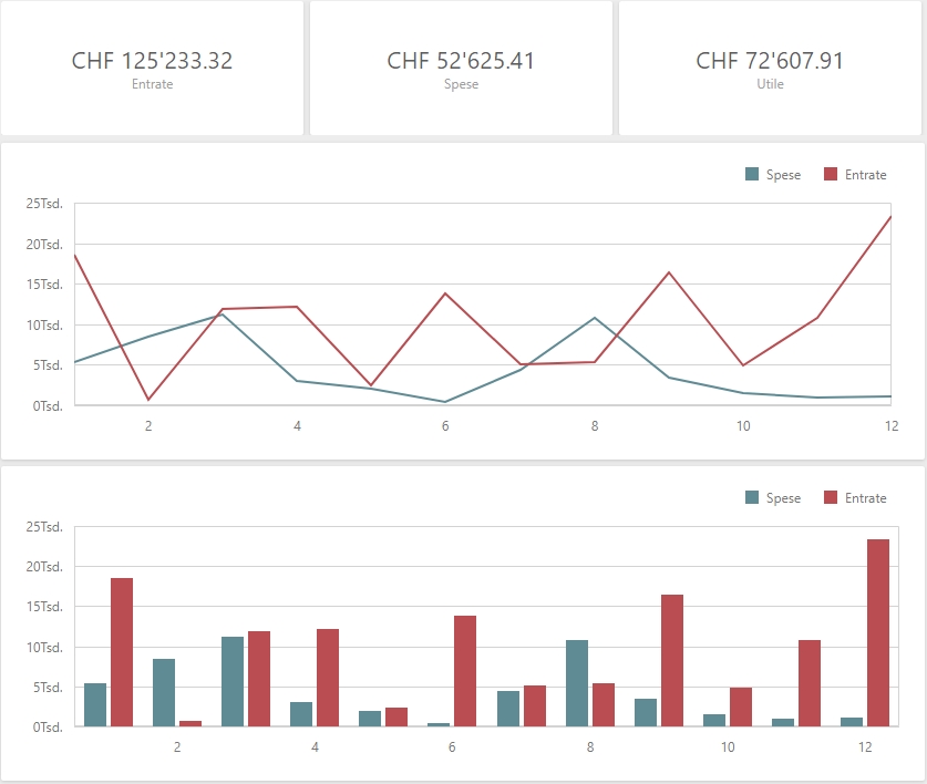 Tenete la vostra contabilità due volte, utilizzate piani contabili predefiniti e create senza fatica bilanci, conti economici e dichiarazioni IVA per periodi liberamente selezionabili.