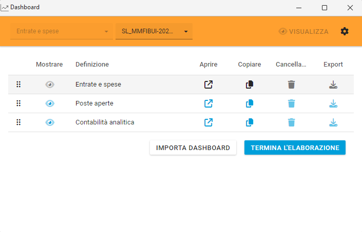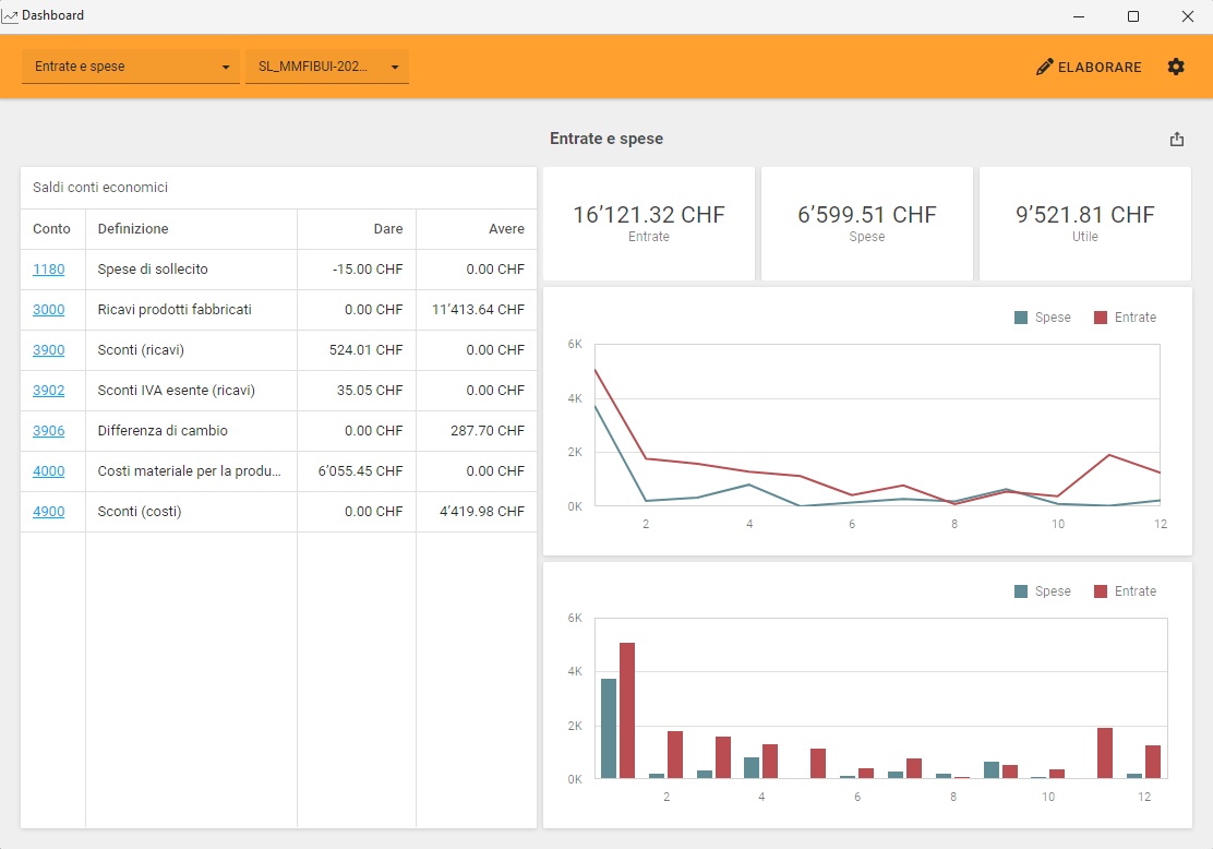 Con il dashboard integrato, potete valutare in modo chiaro gli indicatori finanziari centrali nella contabilità SelectLine e visualizzarli direttamente in forma grafica. Che si tratti di una panoramica delle partite aperte, di indici di liquidità o di valutazioni relative a conti e registrazioni, dal grafico a barre al tachimetro: il dashboard vi mostra ciò che volete, come volete. In questo modo potete riconoscere a colpo d'occhio tendenze, anomalie e necessità di intervento.