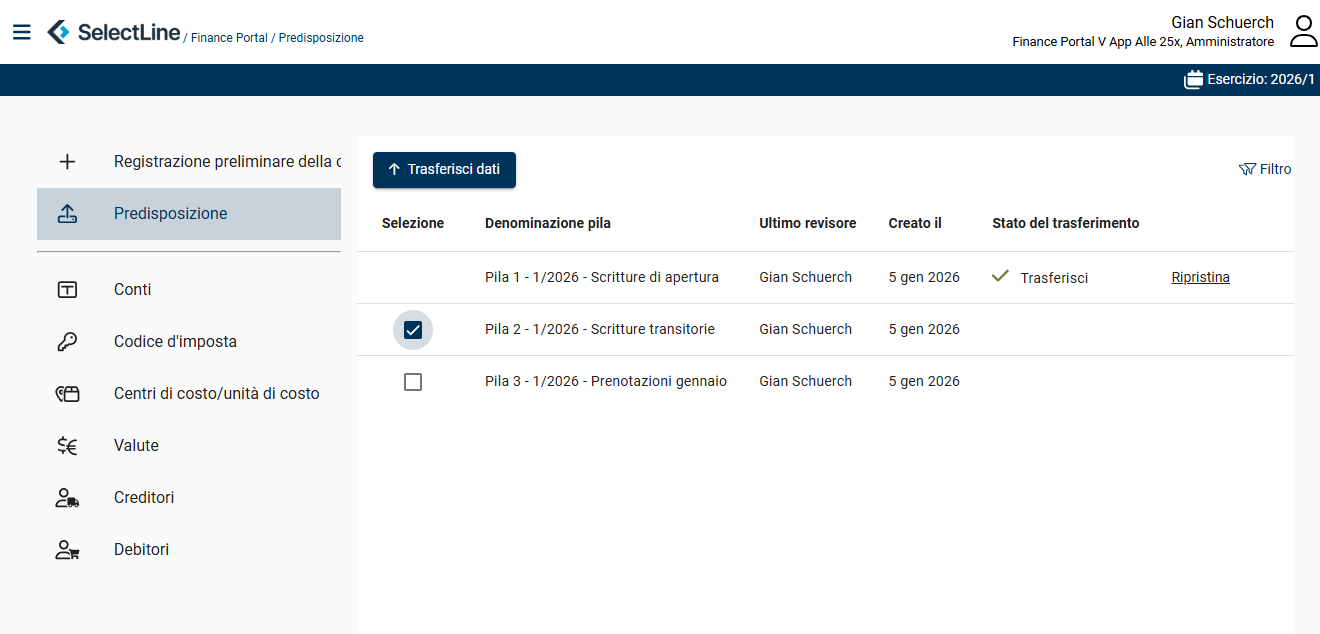- Trasferimento trasparente delle pile alla contabilità